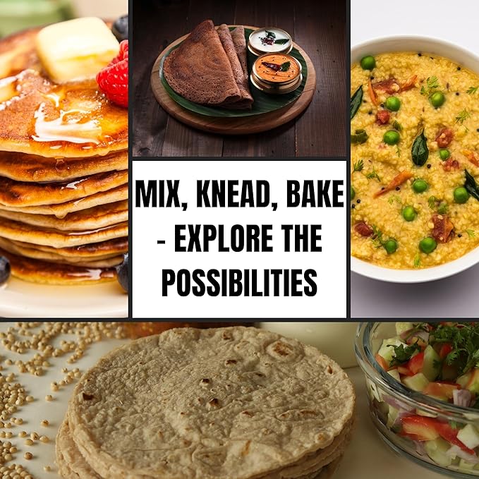 - Ragi Flour: Dosas, porridge, laddus, brownies
