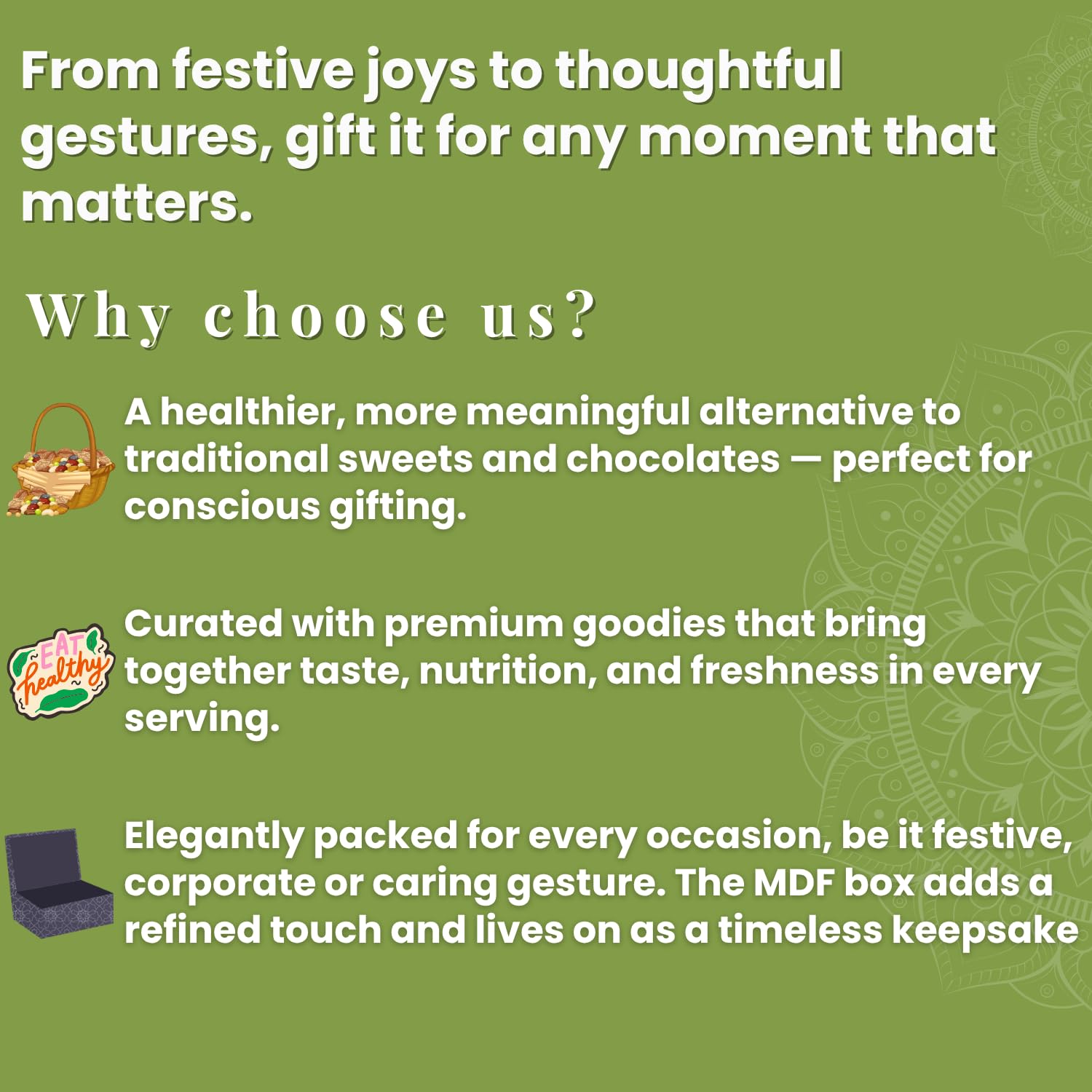 - Generous quantities compared to standard gift boxes
