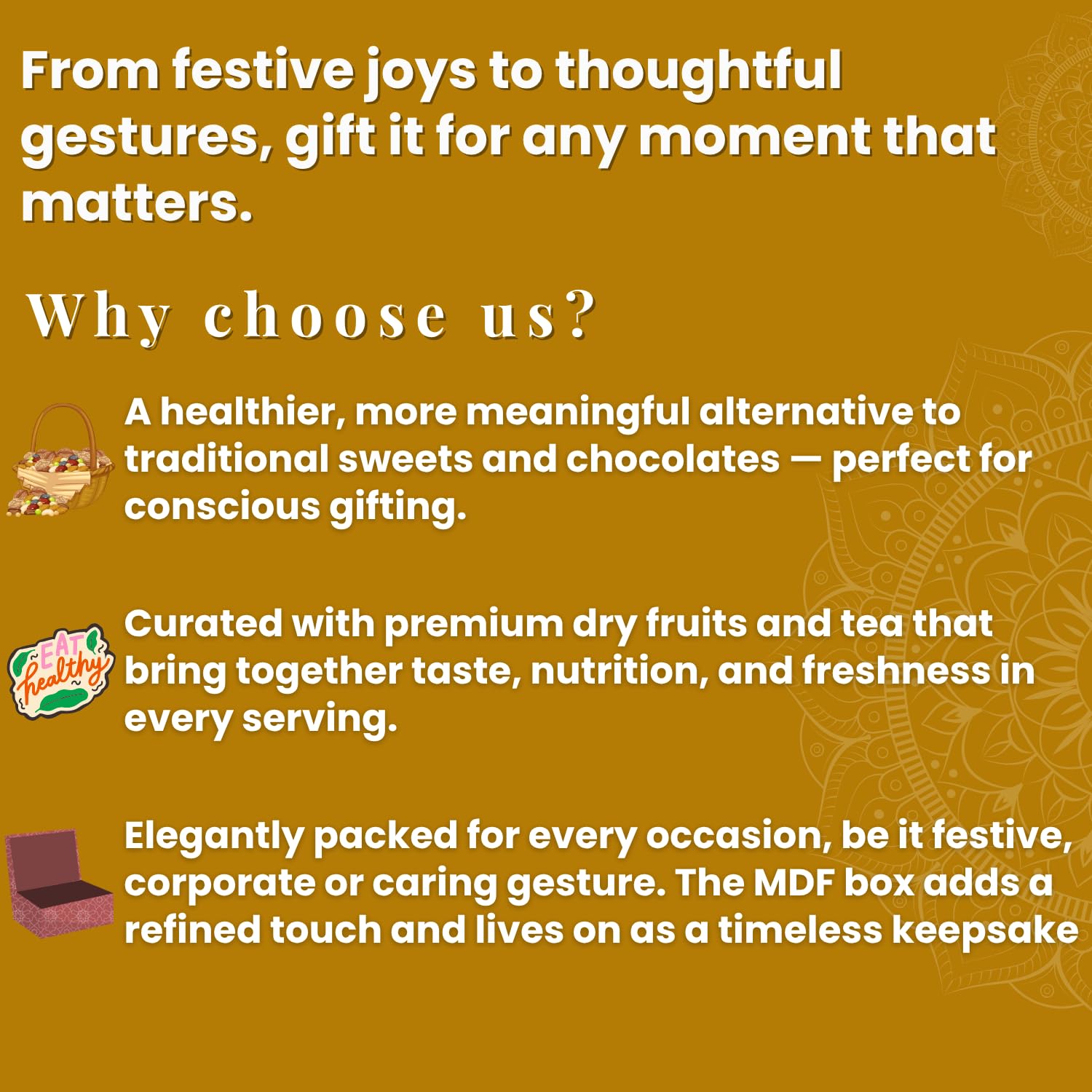 This luxurious hamper features a carefully curated trio of the finest dry fruits: