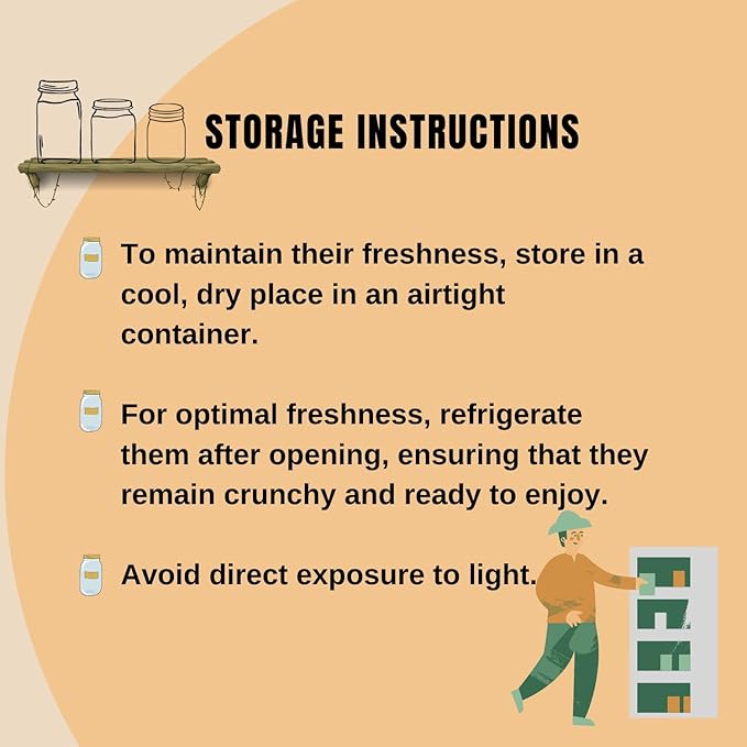 Packed in a resealable, hygienic pouch to preserve freshness. Store in a cool, dry place or refrigerate after opening for extended quality and crunch.