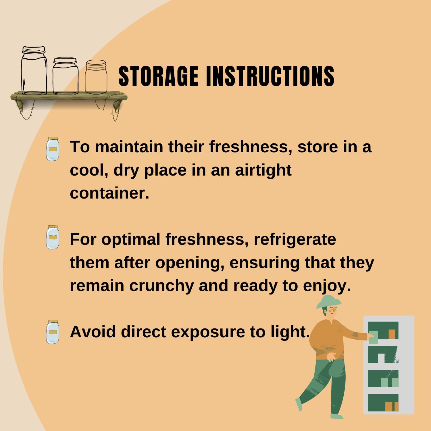 Sealed in a resealable, hygienic pouch for long-lasting crunch and taste. Store in a cool, dry place, and refrigerate after opening for optimal freshness.