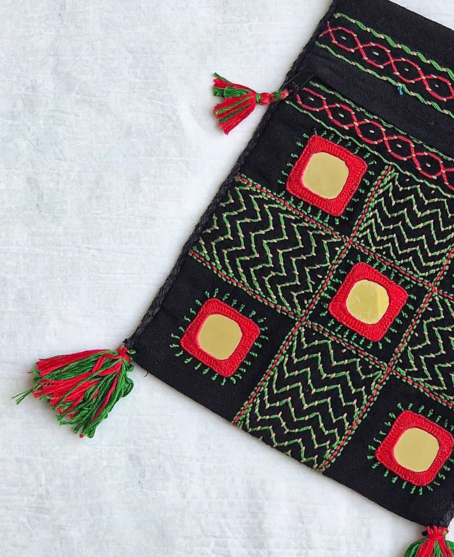 Embellishments: The use of small mirrors, beads, and coins is a distinctive feature, adding sparkle and texture to the embroidered pieces.